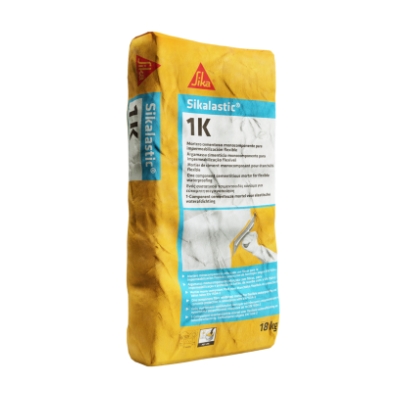 Sikalastic®-1K é uma argamassa monocomponente, reforçada com fibras e com capacidade de ponte de fissuras, à base de cimento modificado com polímeros especiais resistentes a alcalis. Sikalastic®-1K é adequado para aplicação com trincha, rolo, espátula, talocha ou projeção.
