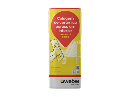 Colagem de peças porosas e absorventes de pequeno e médio formato no interior sobre rebocos e betonilhas.